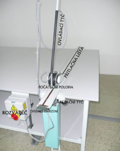 Aretační tyč-slouží pro aretaci přítlačné lišty vhorní poloze (k snadnému vyjmutí nařezané vrstvy látky)