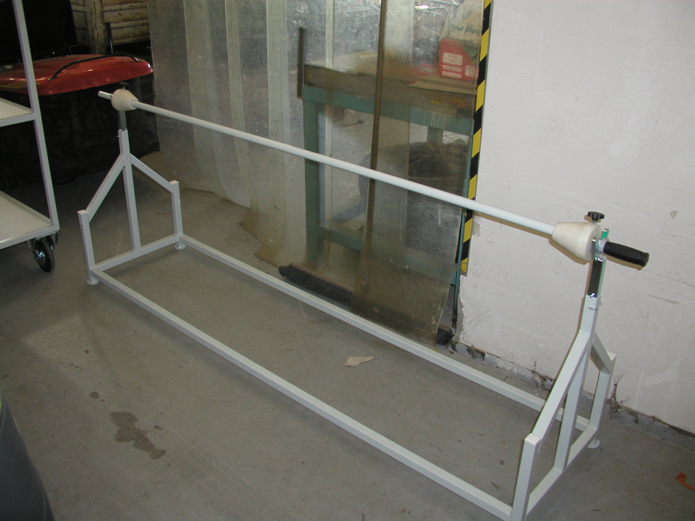Odvíjecí stojánek je samostatně stojící zařízení pro odvíjení a ruční pokládání rolovaného materiálu. Součástí stojánku jsou upínací kužely a nosná tyč.