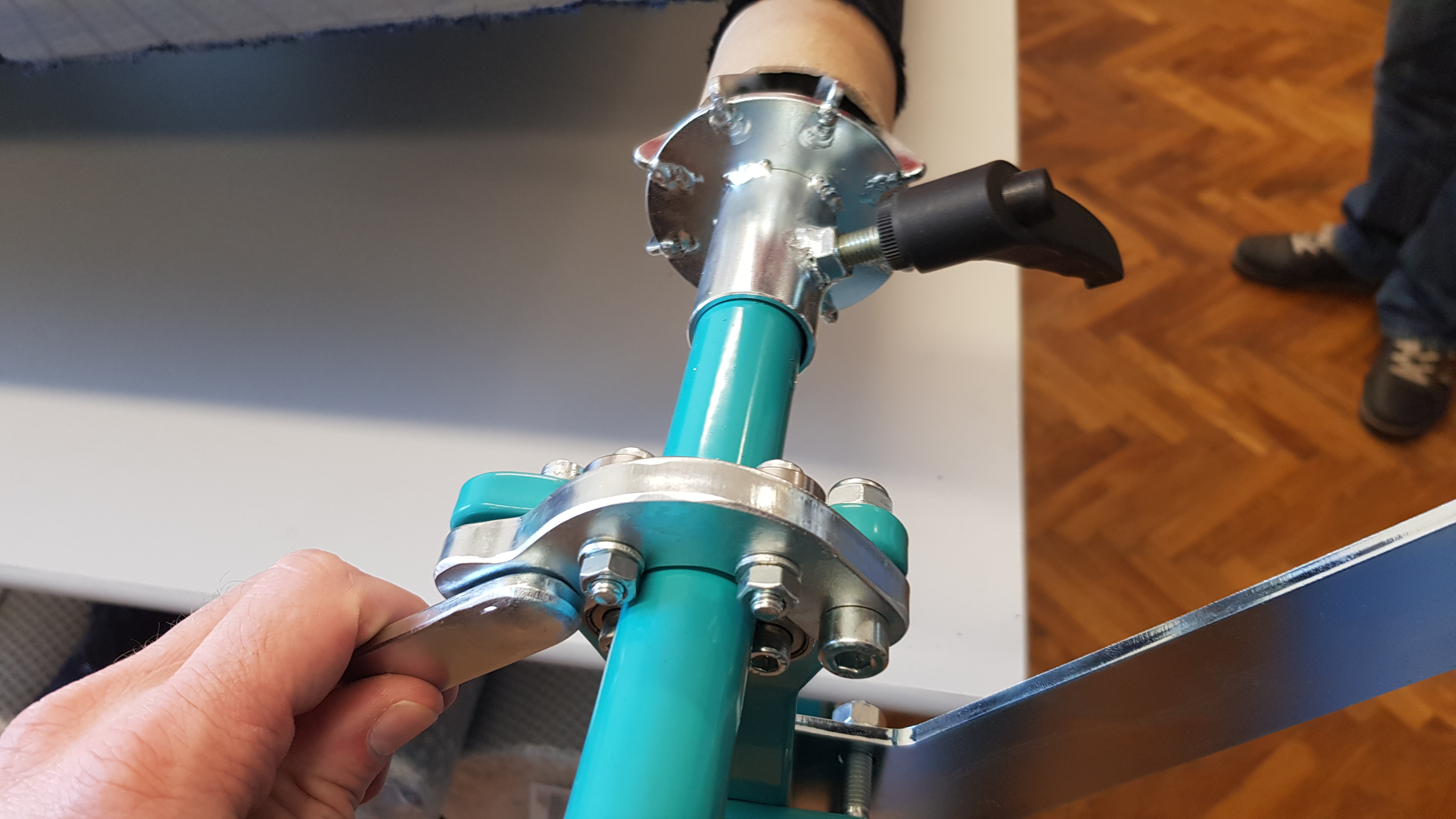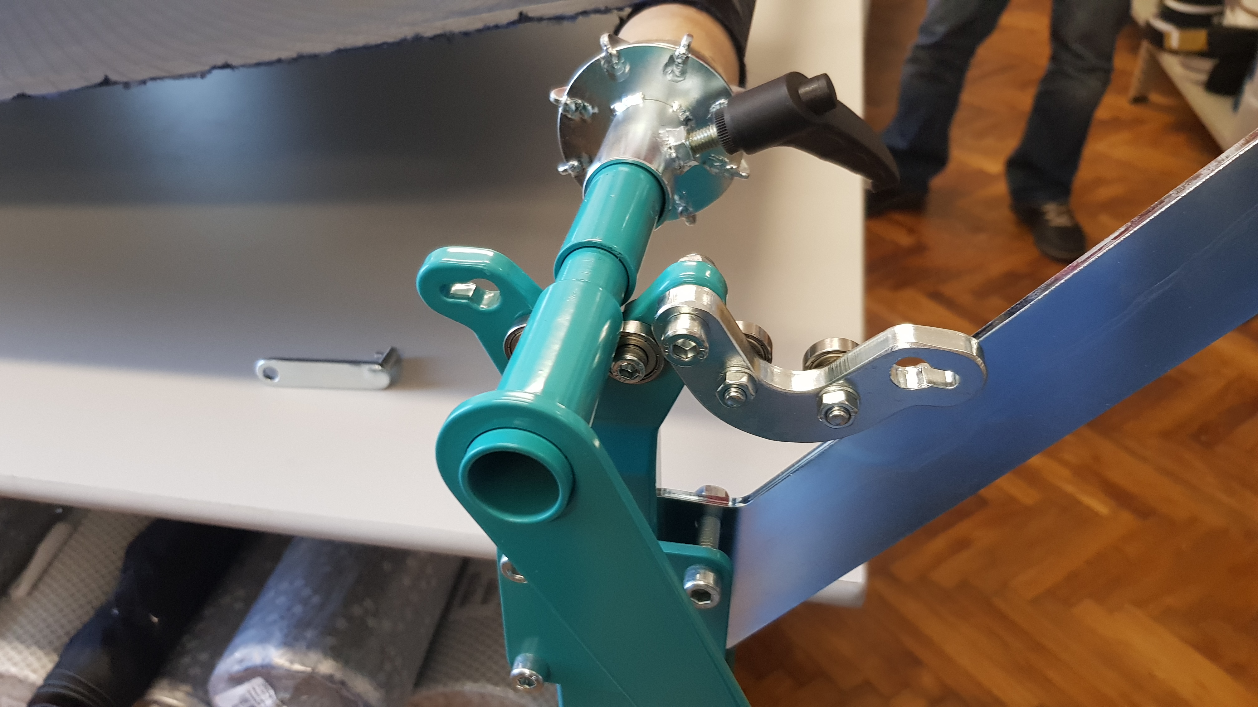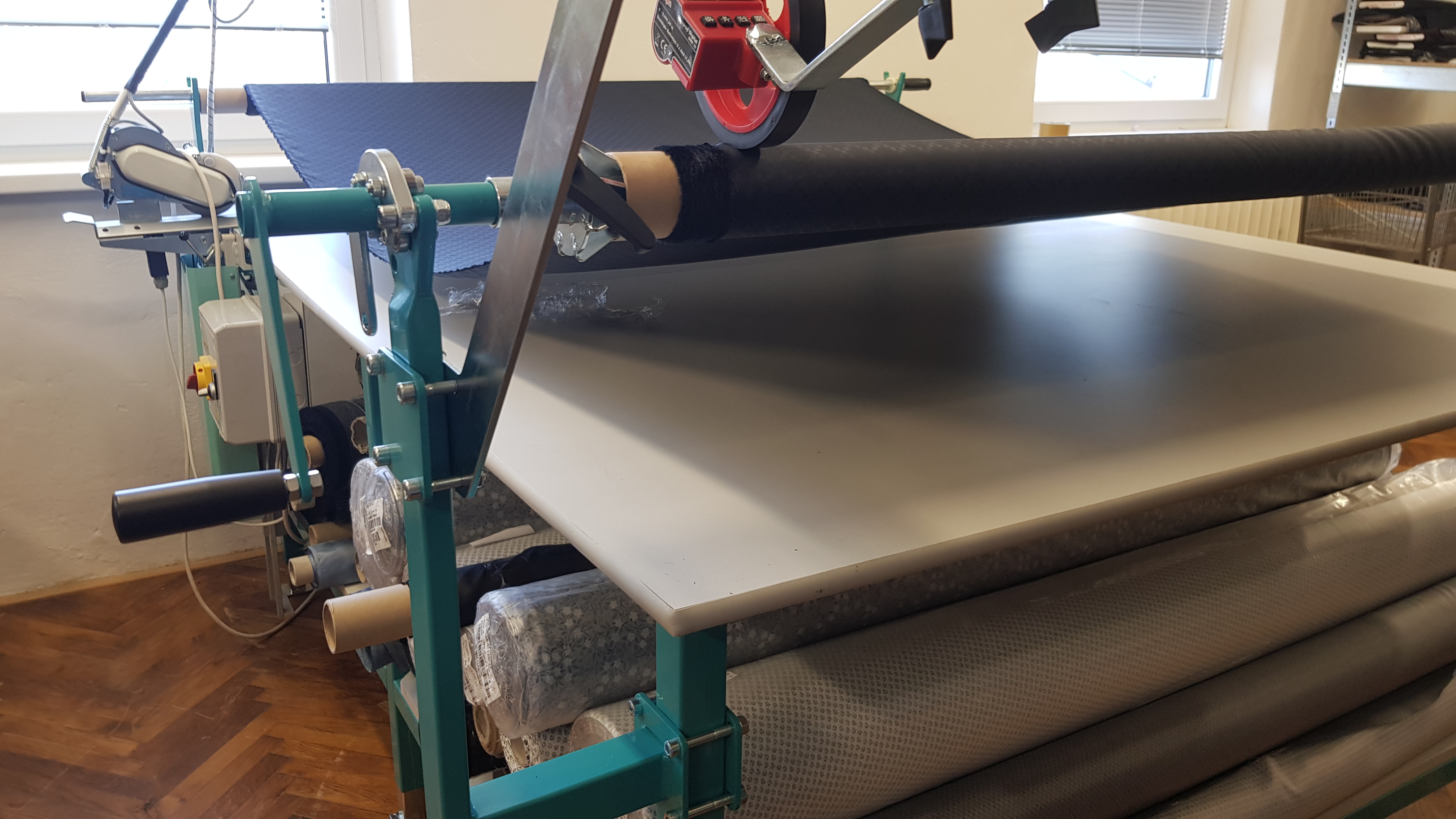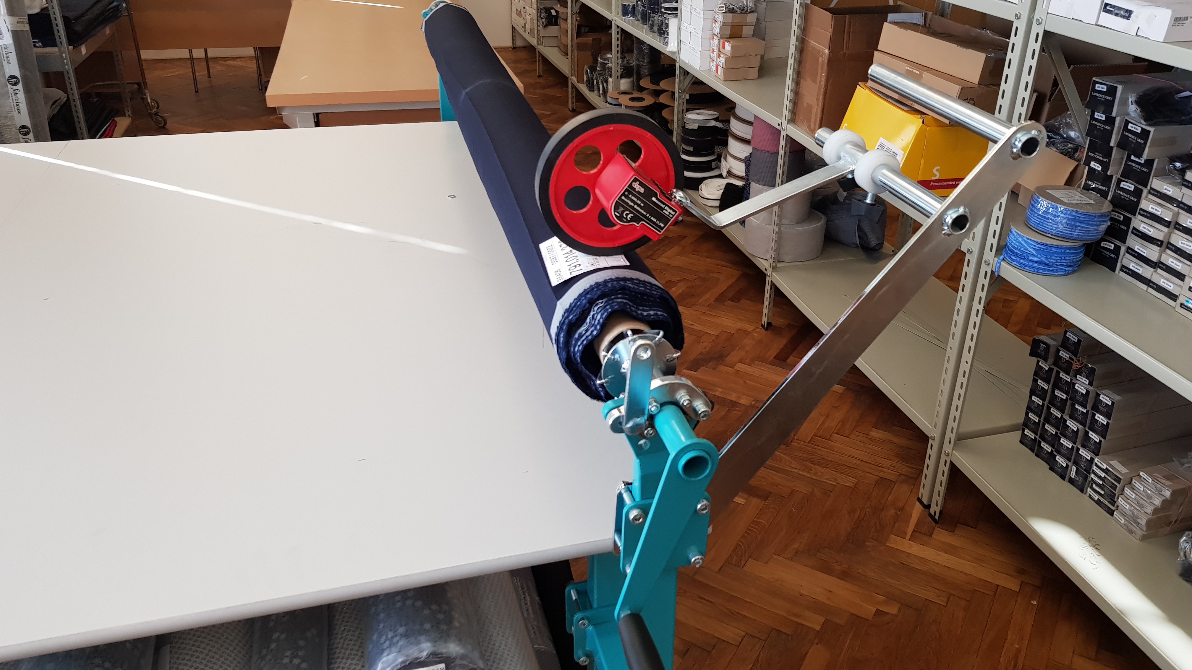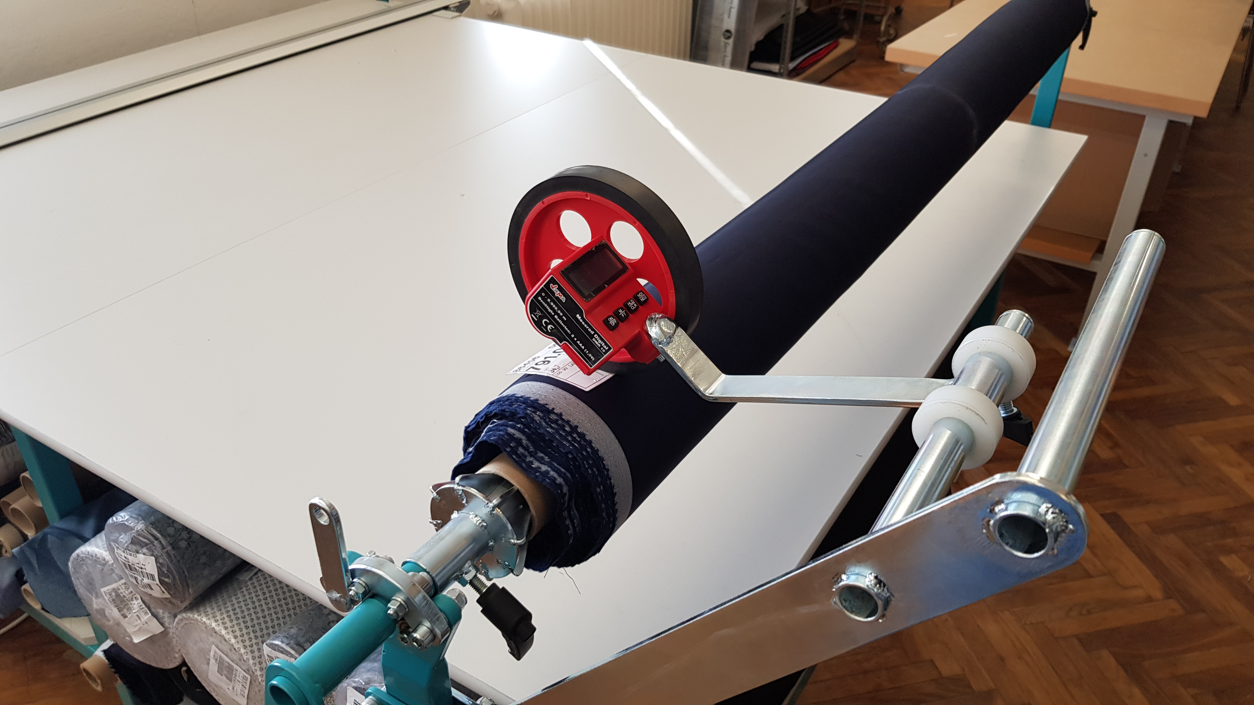 Papírová dutinka se upne mezi dva ocelové kužely, které drží dutinku proti pootočení. Látka se na dutinku připevní a poté stačí pouze točit klikou a sledovat na digitálním displeji délku požadovanou pro namotání. Proti nechtěnému vyskočení navíjecí tyče při navíjení slouží zámky s aretací.