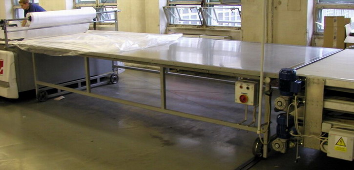Přepravní stůl má shodnou funkci se stolem předchozím s tím rozdílem, je rozšířen o možnost posunu stolu mezi dvěma či více pokládacími linkami v rámci téměř libovolně dlouhé kolejnice