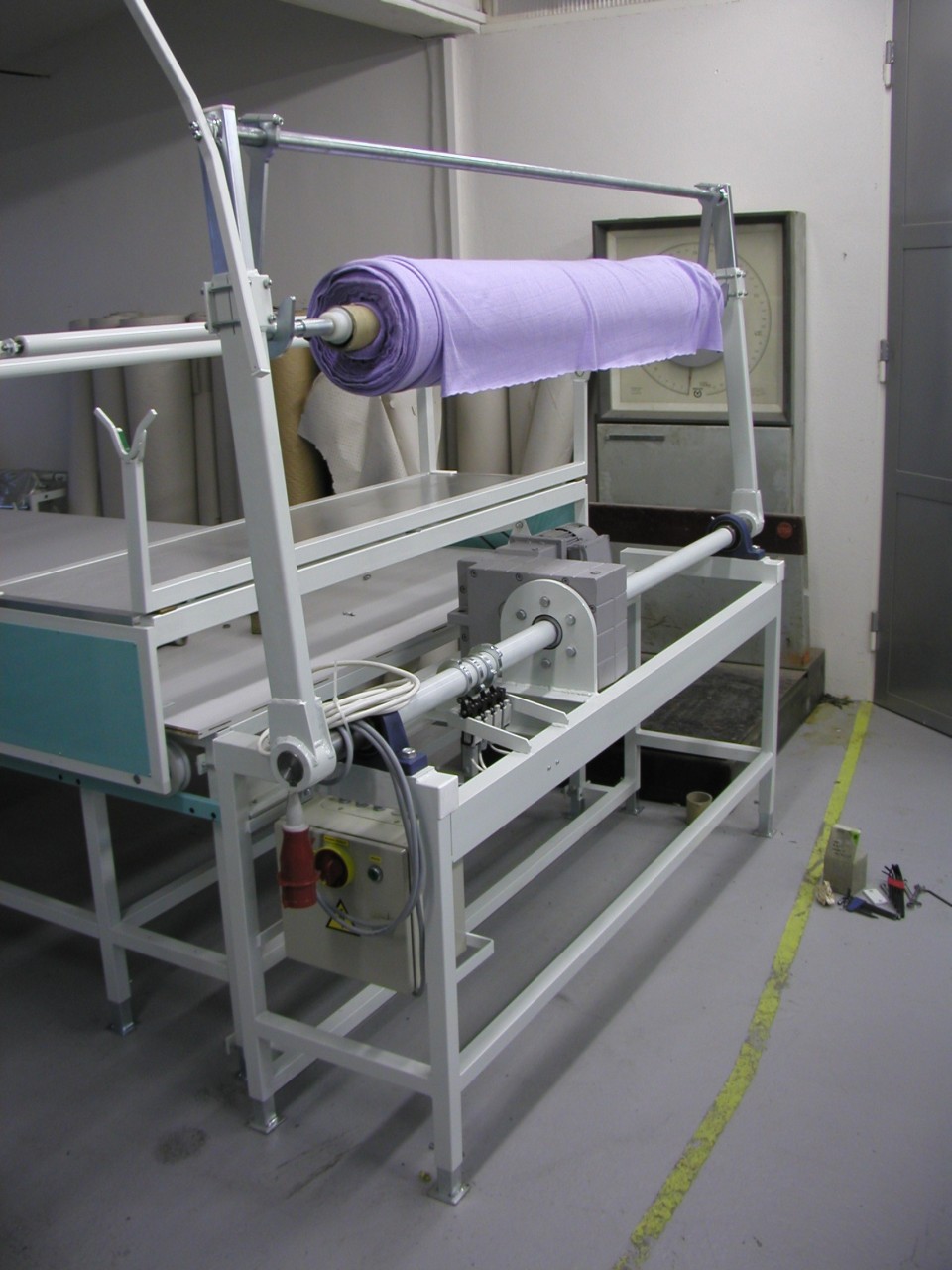 Zvedací zařízení slouží pro nakládání role materiálu na pokládací vozík 1603.